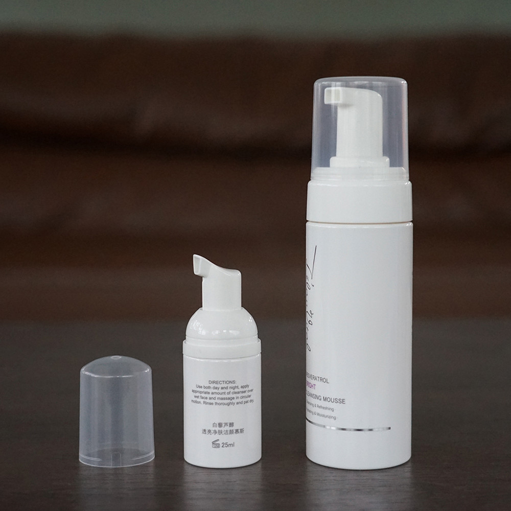 150 মিলি 25 মিলি হোয়াইট পিইটি কসমেটিক সিলিন্ডার ফেসিয়াল ক্লিনজার প্লাস্টিক ফোম পাম্প বোতল