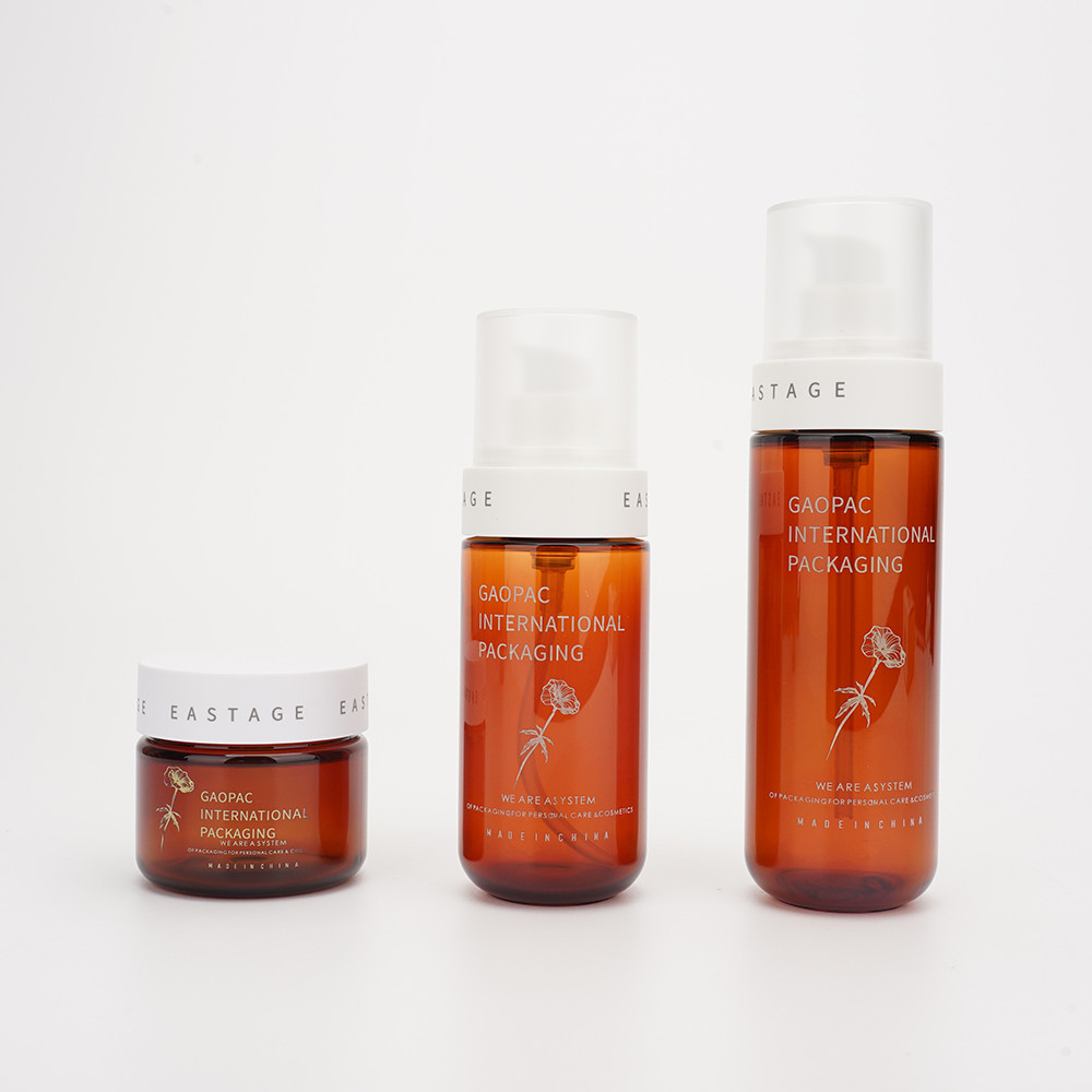 3ps খালি ত্বকের যত্ন পণ্যের বোতল।সহজ নকশা, একটি সাদা lাকনা সহ অ্যাম্বার বোতল শরীর।ক্রিম জার, লোশন বোতল সহ মাল্টি স্পেসিফিকেশন।এটি পুনর্ব্যবহারযোগ্য হতে পারে।