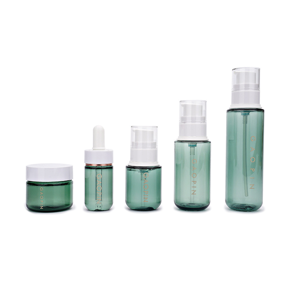 স্কিন কেয়ার সেট খালি বোতল, ক্রিম, লোশন, এসেন্স, পিইটি উপাদান ব্যবহার করে, পরিবেশ বান্ধব উপকরণ ব্যবহার করা যেতে পারে এবং পুনর্ব্যবহারযোগ্য হতে পারে।বিভিন্ন ধরণের বহুমুখী, বিভিন্ন ত্বকের যত্ন পণ্য এবং প্রসাধনী পণ্যের প্যাকেজিং পূরণ করতে, অথবা মানুষের বিভিন্ন ভ্রমণ চাহিদা মেটাতে।