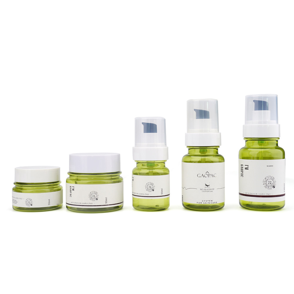 সবুজ ত্বকের যত্নের প্যাকেজ খালি বোতল, বিভিন্ন ভ্রমণের চাহিদা পূরণের জন্য বহুবিধ বৈশিষ্ট্য।সহজ বিপরীত ingালা জন্য বোতল মুখ নকশা স্ক্রু।পরিবেশ বান্ধব উপাদান, যা পুনর্ব্যবহারযোগ্য হতে পারে।ছোট এবং হালকা, এবং বহন করা সহজ।